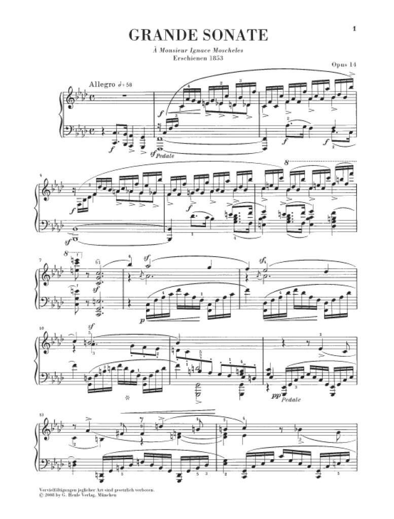 Comme nombre des oeuvres de Schumann, l’opus 14 se présente selon deux versions, à savoir, le «Concert sans Orchestre» en trois mouvements de 1836 et, en cinq mouvements, la «Grande Sonate» datant de 1853- nous ne savons rien de précis sur les raisons de cet arrangement- toutefois l’éditeur de la première version s’est exprimé avec enthousiasme, disant qu’il tenait pour très moderne l’«idée avec le Concert». Éventuellement, Schumann a repris plus tard la suggestion du dédicataire, Ignaz Moscheles, pour qui le morceau présentait «moins les exigences d’un concerto et plus les caractéristiques d’une grande sonate». Dans notre édition révisée, qui inclut entièrement la premièreversion, Ernst Herttrich, l’éditeur responsable, commente les deux versions dans un texte circonstancié. ?