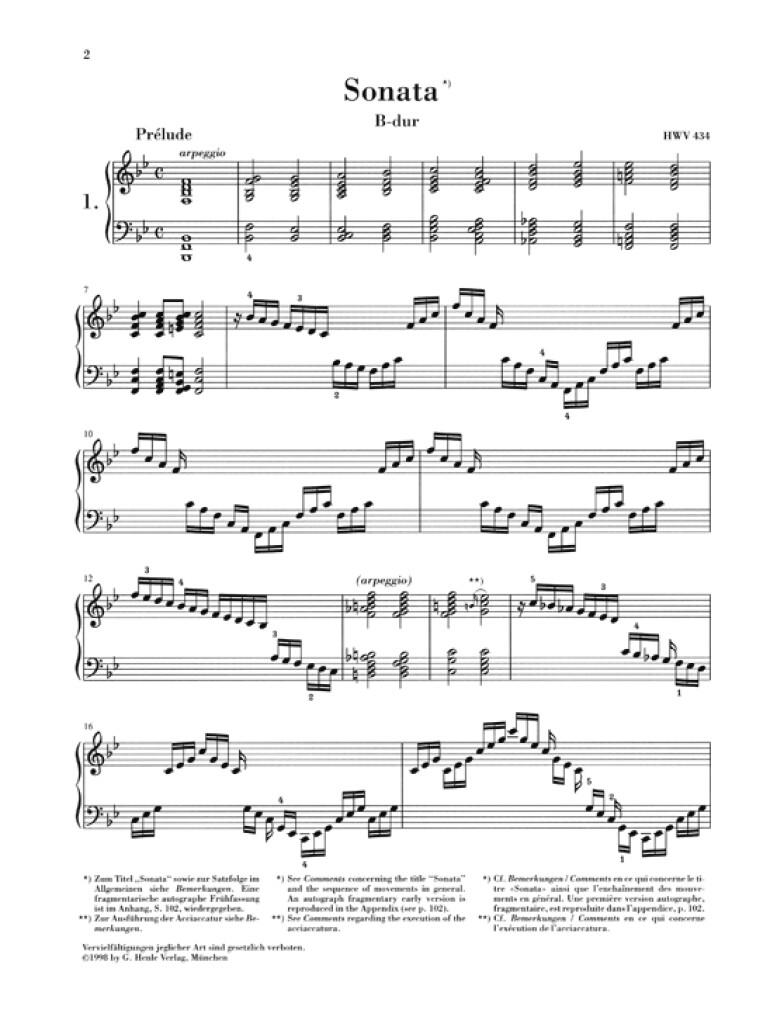 «Sa musique de clavier est incomparable, presque indispensable au connaisseur du clavier» écrivit le théoricien de la musique Johann Anton Scheibe en 1743 à propos de l’oeuvre pour clavier de Georg Friedrich Haendel. Imprimé en 1733, le deuxième recueil rassemblant des suites pour piano et des pièces indépendantes du grand maître du baroque permet au pianiste intéressé de s’en faire une idée très colorée. Parmi les pièces HWV 434–442 intitulées «Sonate», «Suite», «Prélude» ou «Chaconne», se trouvent la célèbre «Chaconne en sol majeur» et ses 21 variations, toujours données en concert à l’heure actuelle. Le musicien y découvrira également une «Aria» et ses cinq charmantesvariations, rendues célèbres par Brahms et les variations qu’il composa à son tour sur le même thème. Le recueil parut pour la première fois à Londres et Amsterdam sans l’accord de Haendel et contient de nombreuses erreurs d’impression, aussi une édition urtext sérieuse était-elle indispensable. Les sobres doigtés de Klaus Schilde permettent de négocier quelques passages difficiles avec davantage d’aisance et ouvrent des perspectives inattendues.