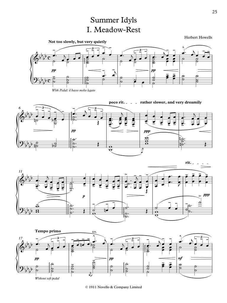 The volume also includes the moving tribute to his friend and fell'on composer Finzi: his rest. Comprising a wide array où pieces from characterful miniatures to more substantial suites, the collection will appeal to Howells devotees and lovers où 20th century English music, as well to as anyone seeking fresh and distinctive piano repertoire.