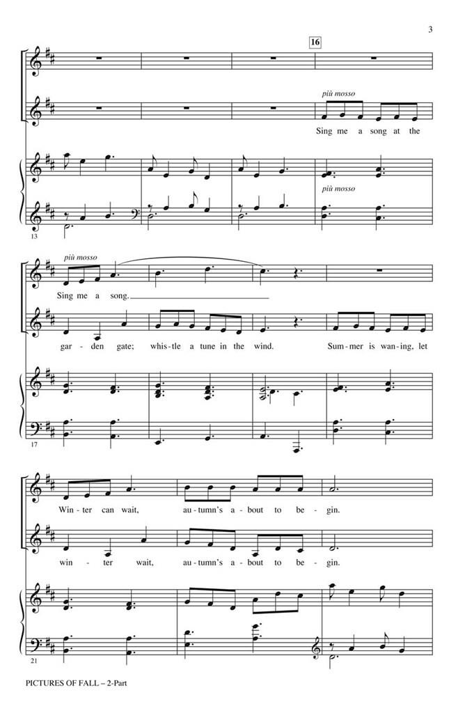 Toutes les couleurs de l’automne sont ici dans cette pièce originale dansante et mélancolique pour voix aiguës, avec des paroles charmantes et un décor soigneusement conçu qui mettra en valeur vos chanteurs à leur meilleur ! Durée : environ 2h00.