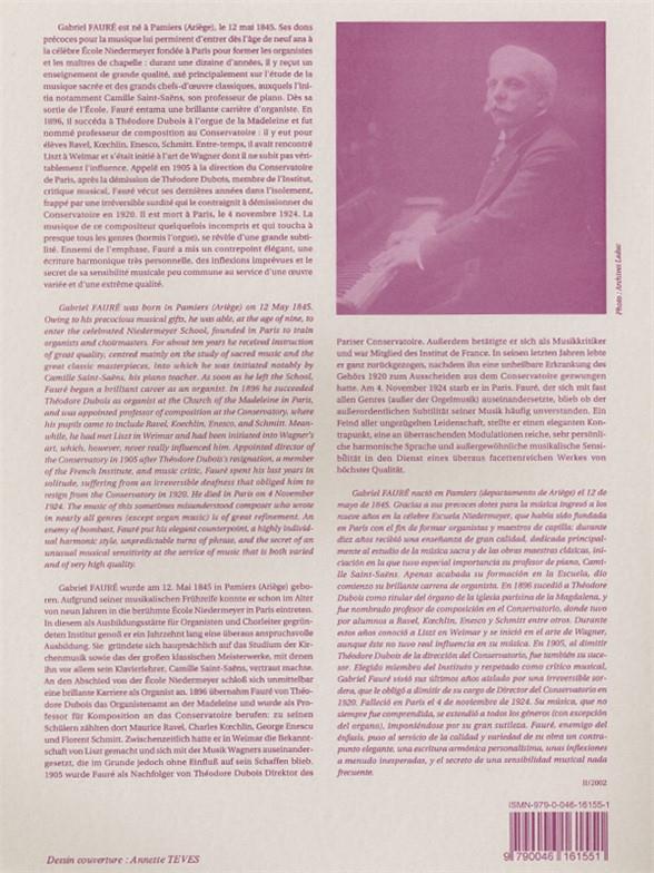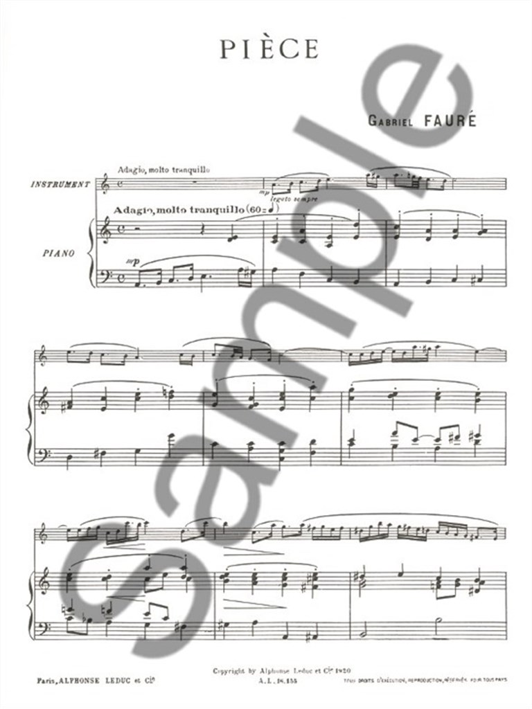 Pièce by Gabriel Faure is a piece for Flute, Oboe or Violin, with Piano accompaniment. This romantic piece in A only features one movement. Small, it is really melodious and quite slow: ; Adagio, molto tranquillo. Rated as quite difficult, upper-intermediate players will enjoy playing it for recitals. The book includes an insert with the instrument only part. Gabriel Faure was a French composer, organist, pianist and teacher. He is one of the most important composers of his generation, with pieces such as 'Pavane' or 'Requiem'.