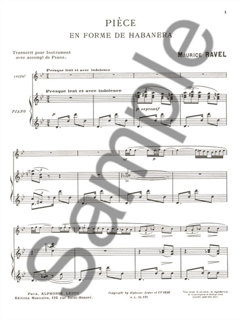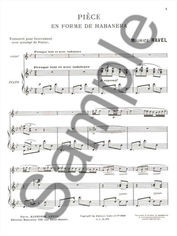 Initially composed in 1907 for Bass Voice and Piano, Habanera by Maurice Ravel was transcribed for Flute and Piano for this edition. Based on a Cuban Contradanza, it features a special habanera rhythm and is generally performed with sung lyrics. In this edition, the Flute is a substitute for the voice. While composing this piece, Maurice Ravel was also working on two works also with Spanish influence: 'The Spanish Rhapsody' and 'The Spanish Hour'. This edition, which can be used for recitals and exams, will enlighten Flute players. Maurice Ravel (1875-1937) is a French composer famous for his Impressionist contributions. He wrote numerous pieces, including 'Daphnis and Chloé'and the famous 'Bollero'.