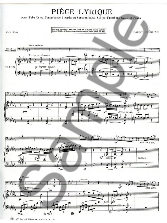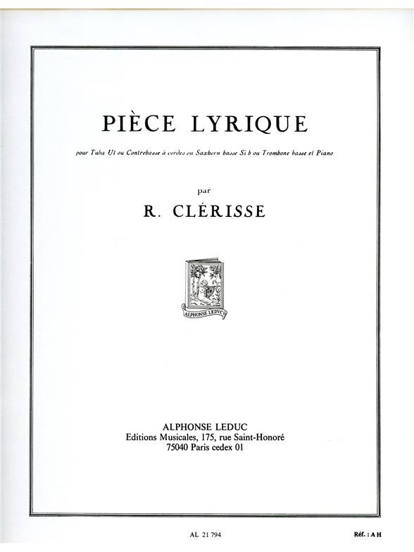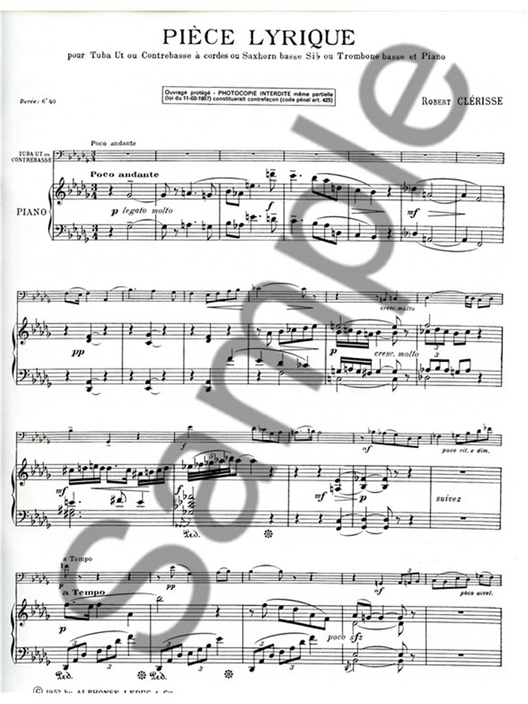 Robert Clerisse's wonderful lyrical piece is suitable for tuba or bass trombone or double bass, with piano accompaniment.