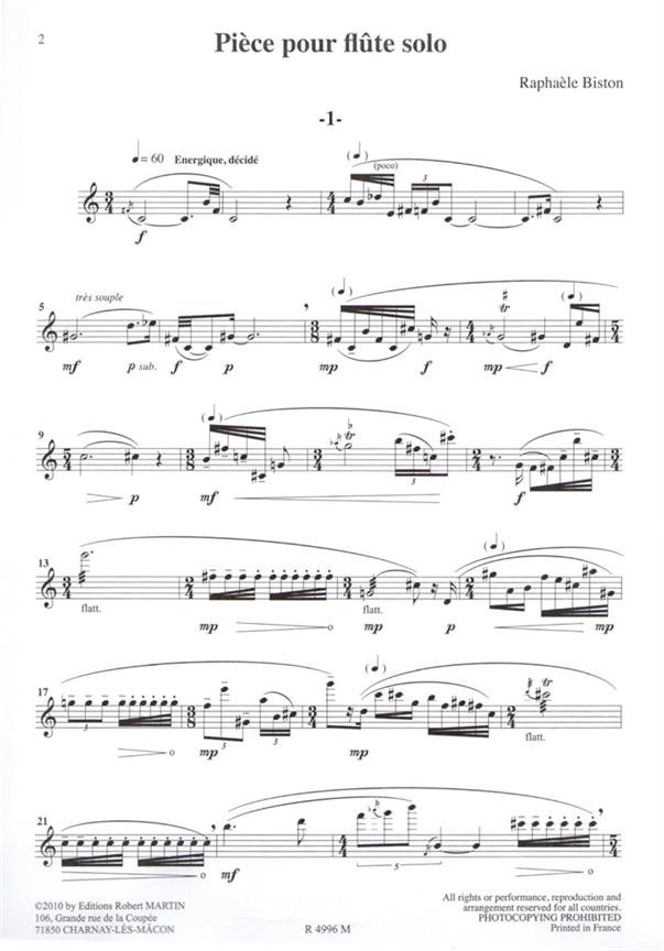 Piece Pour Flûte Solo BISTON RAPHAELE