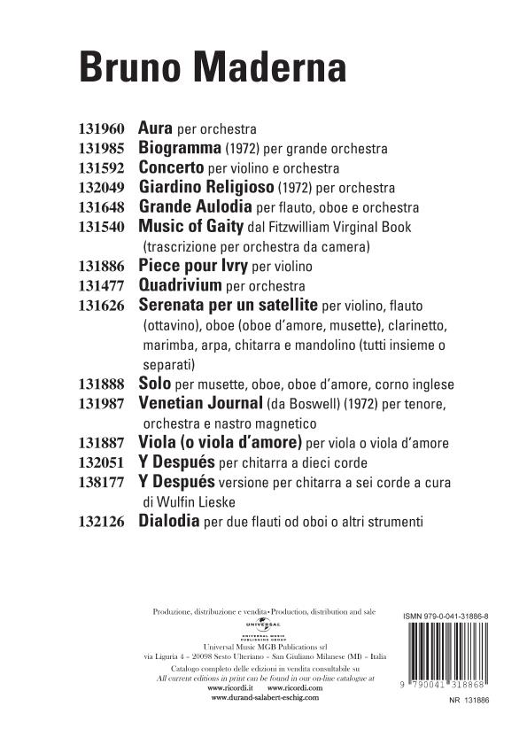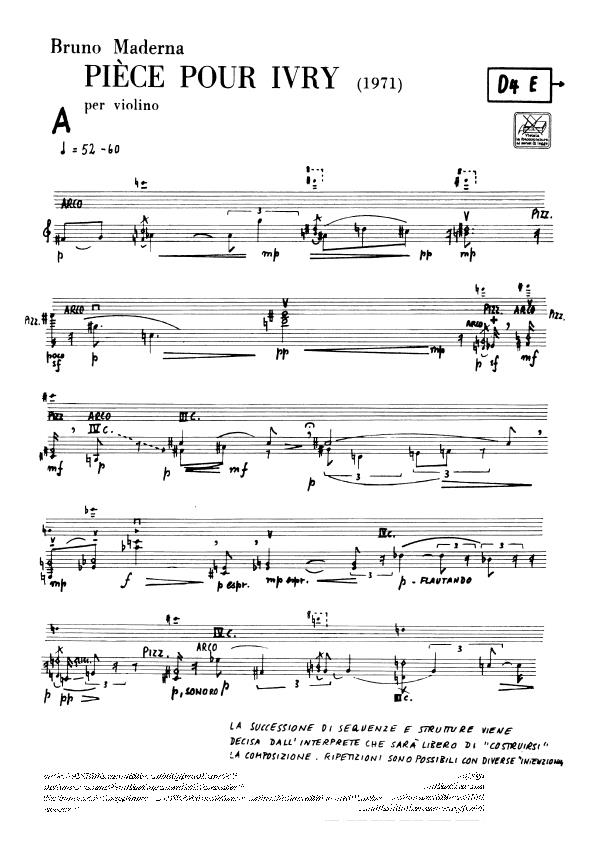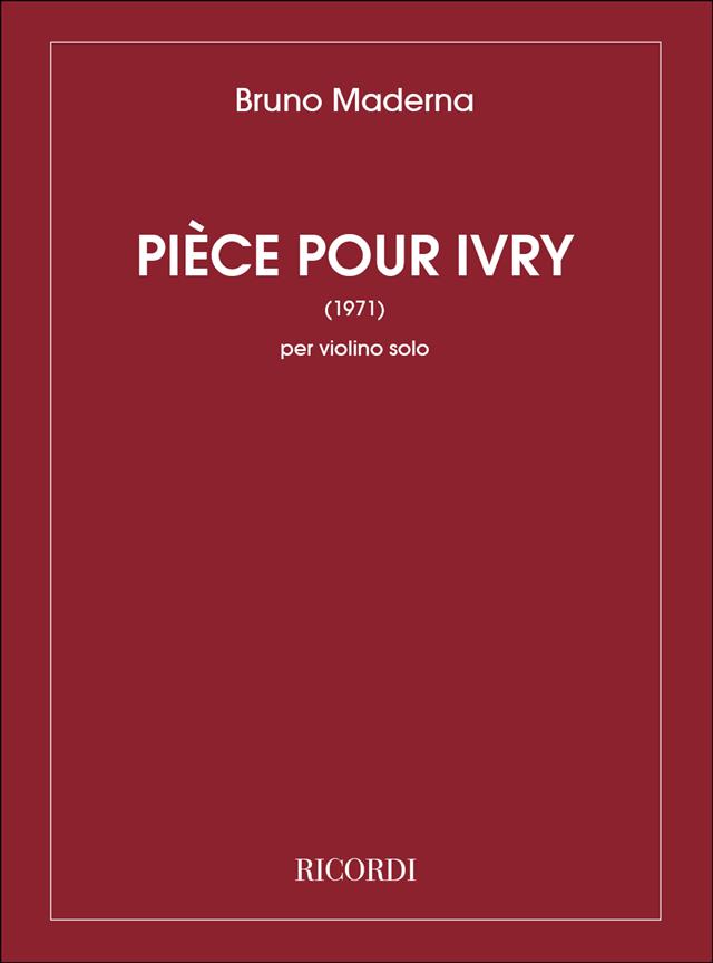 Piece Pour IVry (1971) Per Vl. Solo MADERNA BRUNO