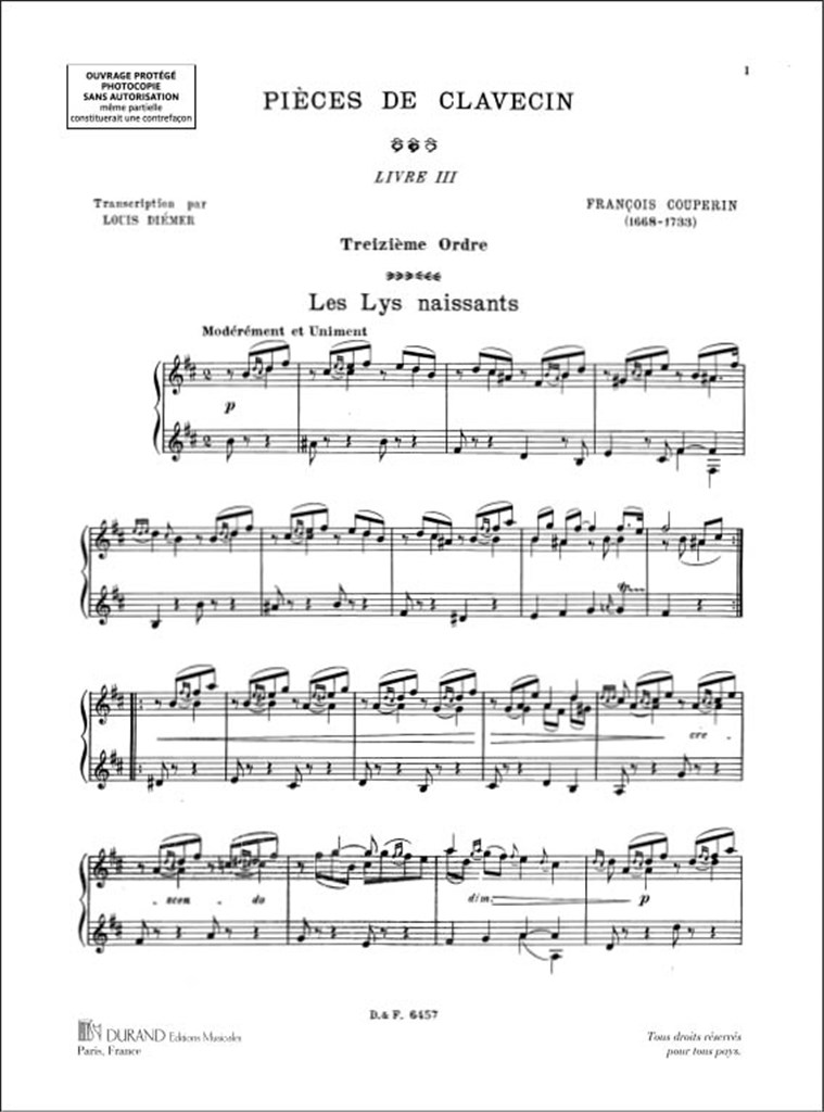 Pieces De Clavecin Pour Piano Livre III (Ordres 13 A 19) COUPERIN FRANCOIS