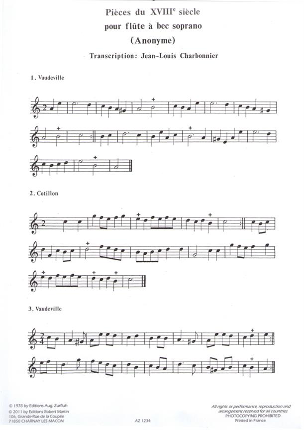 Pieces Du XVIIIe Siecle Vol.1 (Sans Accompagnent) CHARBONNIER JEAN-LOUIS
