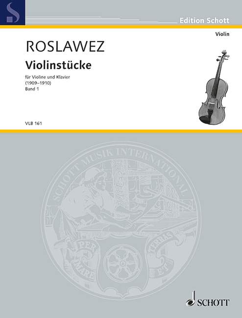 Les pièces de caractères différents et variés dater des 1907 ans pour 1910 et 1930 et de montrer le développement de son style personnel. Alors que les premières pièces sont plutôt traditionnels, pièces ultérieures Roslawez "montrer son chemin vers son système tonal individuelle- la proximité de la musique Scriabine est remarquable. Le répertoire pour ce style est particulièrement faible, et c'est pourquoi les deux volumes sont des coffres au trésor réels de pièces de caractère et peut être recommandé à tous les violonistes.