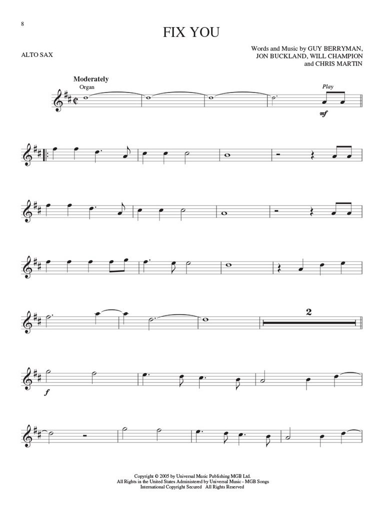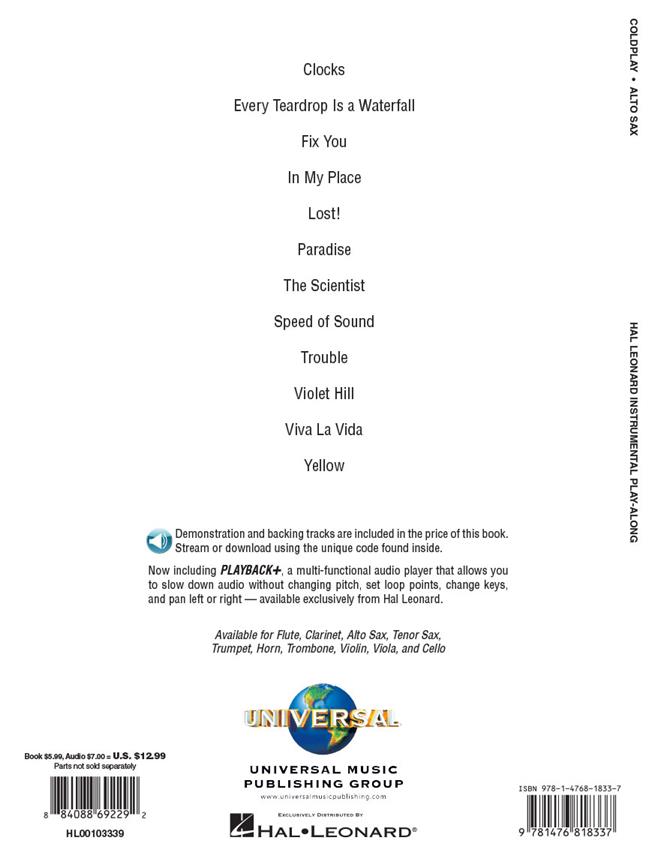 12 Coldplay favoris ont ici été organisées pour saxophonistes alto pour en profiter. Le CD comprend des pistes d'accompagnement vous permettant de jouer comme un pro tout en jouant!