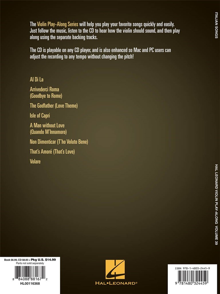 Play-Along Violin: Italian Songs- Volume 39 has been designed to help you play your favourite songs quickly and easily.