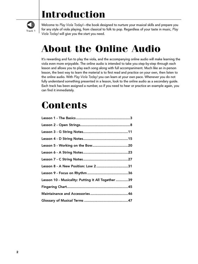 Learn at your own pace and open the door to the world of Viola music. This Viola method features over 100 great songs and examples and can be used by students who want to teach themselves, or by teachers for private or group instruction. Simply follow the tips and lessons in the book as you listen to the audio - 111 demonstration tracks in all available online for download or streaming.