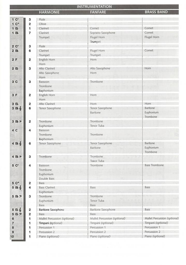 Concert Band ou Harmonie ou Fanfare ou Brass Band Musique pour orchestres et ensembles