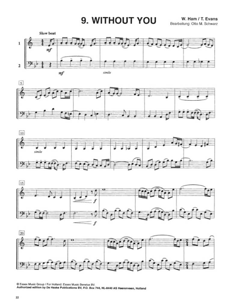 Sailing Sutherland, Gavin Go West Belolo, Henri Jacky Pop and Go Rondo Romantica Lemon Tree Hinkel, Volker Cuba Libre Unknown Melody Without You Ham, W. The Final Countdown Tempest, Joey Everything I do Adams, Bryan Nocturne