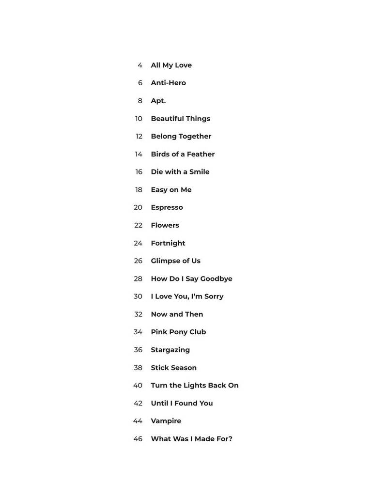 Vous rêvez de jouer vos tubes pop préférés mais vous débutez tout juste au piano ? Vous pouvez maintenant vous lancer directement avec Pop Hits - Super Easy Songbook ! Avec 22 chansons en tête des charts des artistes les plus en vogue du moment comme Taylor Swift, Chappell Roan et Billie Eilish, cette collection rend la musique qu’ils aiment très facilement pour les débutants. Chaque arrangement comprend des mélodies simples à la main droite avec les noms des notes à l’intérieur, des diagrammes d’accords basiques à la main gauche, et surtout, pas de tournée de page ! Que vous soyez un nouvel apprenant ou un joueur de retour, Pop Hits vous donne les outils pour sonner bien dès votre toute première chanson !