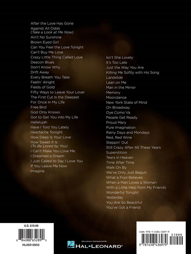 Ce songbook grande nouvelle dispose de 60 des favoris les plus durables de la pop savamment arrangées pour Piano, Voix et Guitare.