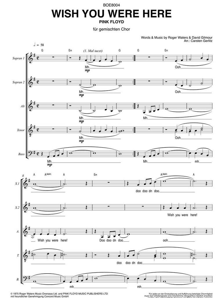 POPCHOIRCLASSICS Pink Floyd: Wish You Were Here PINK FLOYD