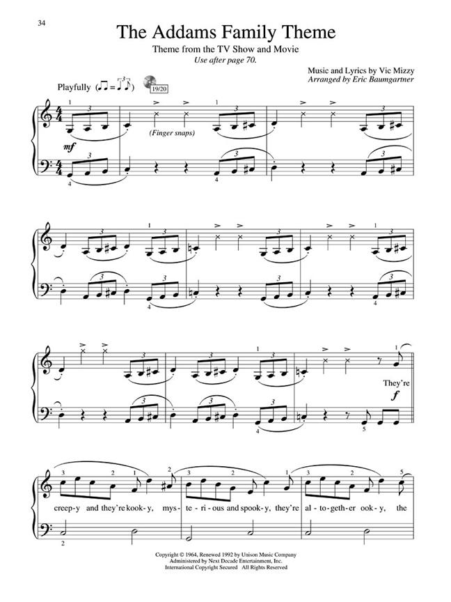 11 chansons pouvant être utilisées seules, ou en complément du Modern Course for the Piano de John Thompson ou toute autre méthode. Comprend : Le thème de la Famille Addams · Chat de ruelle · Do-Re-Mi · J’aurais pu danser toute la nuit · TheMasterpiece · Mémoire · Mon cœur continuera · Le thème de Nadia · Marche des Pillards · Balancement · Un temps pour nous.