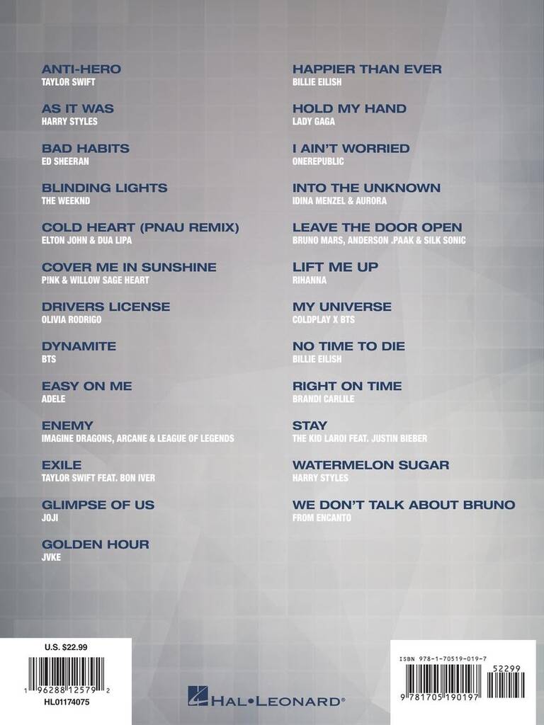 Anti-Hero As It Was Bad Habits Blinding Lights Cold Heart (PNAU Remix) Cover Me In Sunshine Drivers License Dynamite Easy On Me Enemy Exile Glimpse Of Us Golden Hour Happier Than Ever Hold My Hand I Ain’t Worried Into The Unknown Leave The Door Open Lift Me Up My Universe No Time To Die Right […]