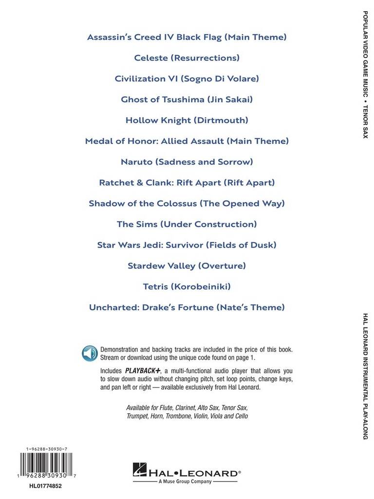 Les instrumentistes peuvent désormais donner vie à leurs thèmes de jeux vidéo préférés ! Avec des thèmes emblématiques comme Assassin’s Creed IV Black Flag, Ghost of Tsushima, Tetris, Stardew Valley et bien d’autres, cette collection inclut des démos professionnelles et des pistes d’accompagnement pour un plaisir ultime de jeu en même temps. Disponible pour flûte, clarinette, saxophone alto, sax ténor, trompette, cor, trombone, violon, alto et violoncelle !