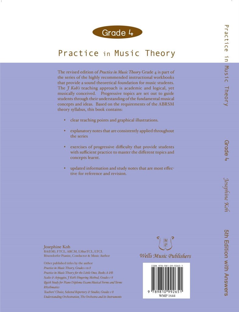 La quatrième année de la série Pratique en théorie musicale est fortement recommandée à ceux qui progressent bien dans leurs premières études musicales. L’approche pédagogique de J Koh est académique et logique, mais musicalement conçue. Les sujets progressifs sont proposés pour guider les élèves dans leur compréhension des concepts et idées musicaux fondamentaux, y compris l’écriture rythmique et l’analyse musicale.