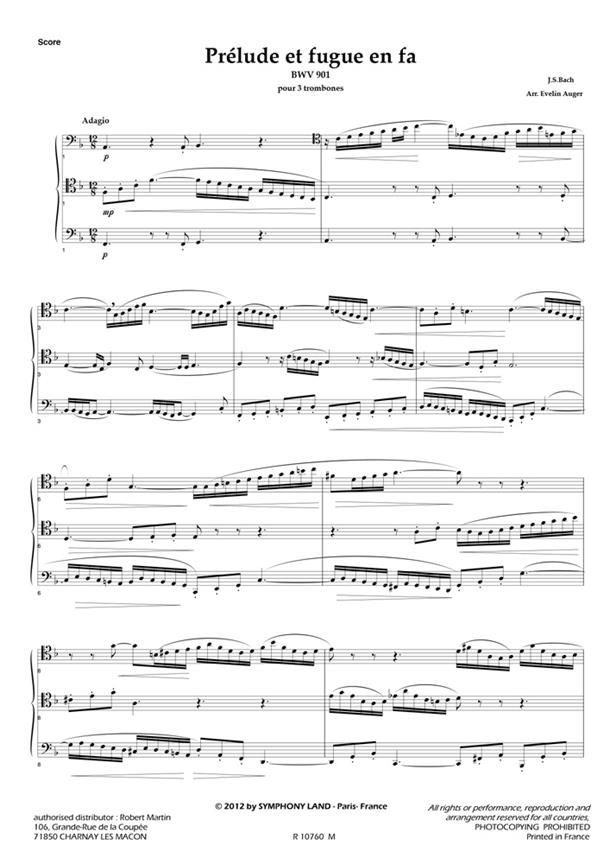 Prélude Et Fugue En Fa Mineur (2 Trombones Ténors Et 1 Trombone Basse) BACH JOHANN SEBASTIAN