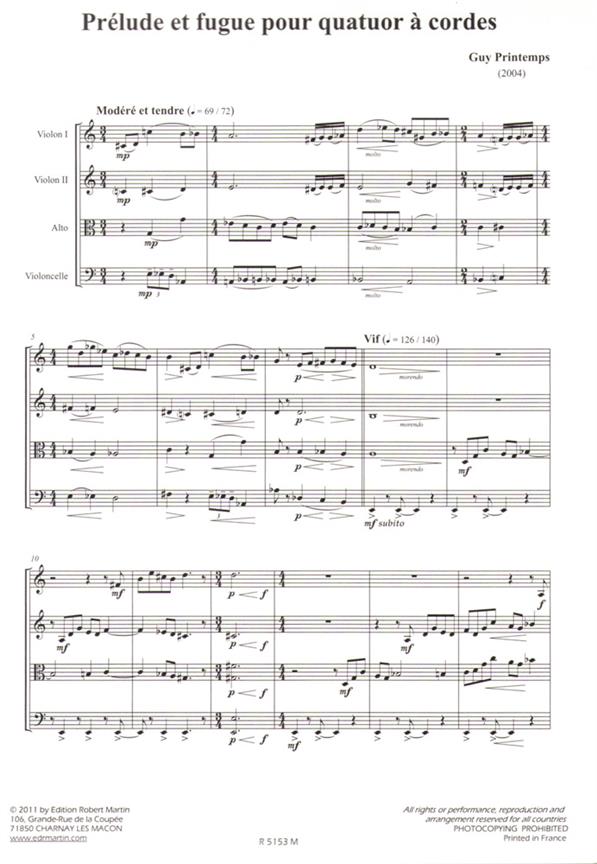 Prelude Et Fugue Pour Quatuor A Cordes PRINTEMPS GUY