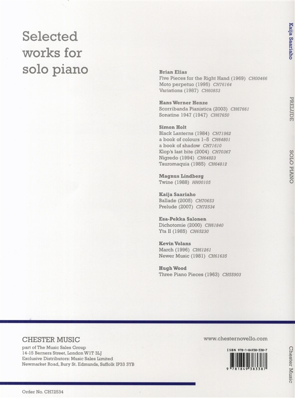 Prelude For Solo Piano SAARIAHO KAIJA