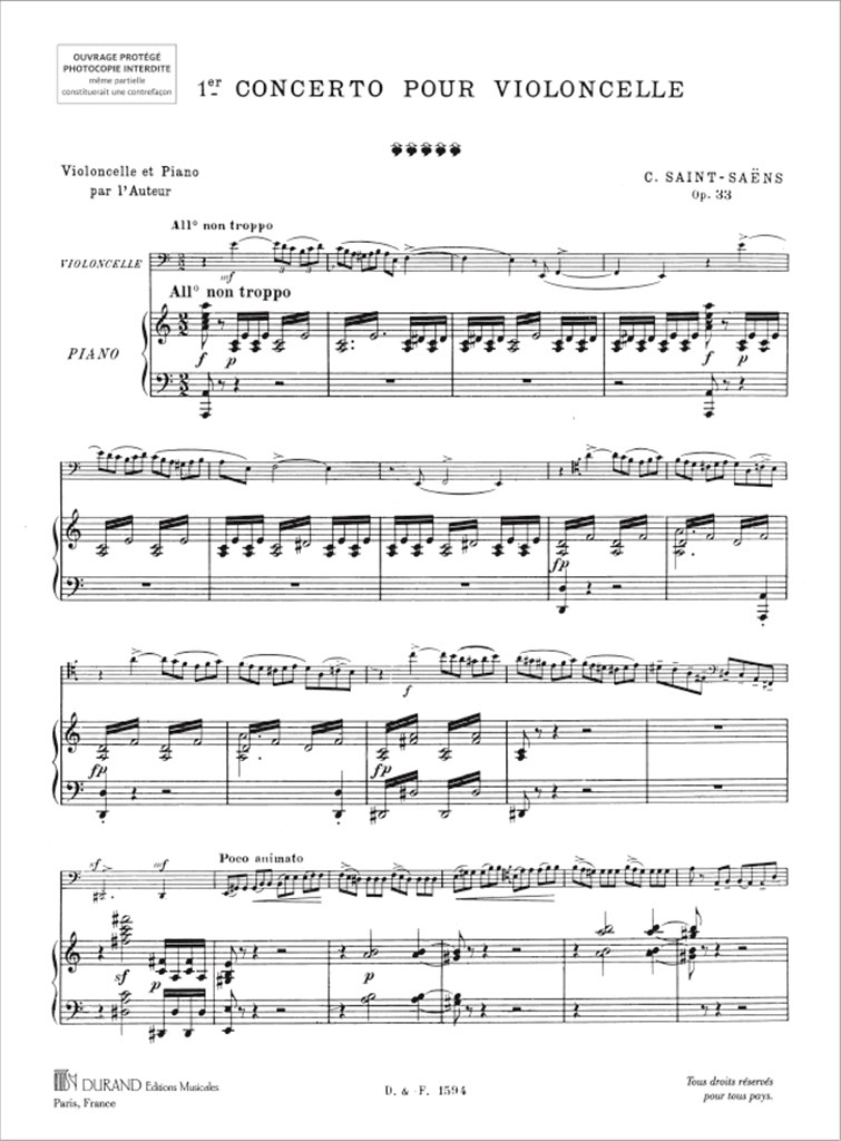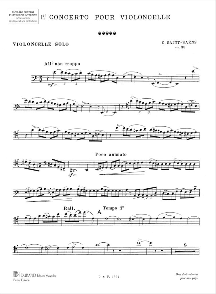 Premier Concerto Op. 33 – Pour Violoncelle Et Orchestre SAINT-SAENS CAMILLE