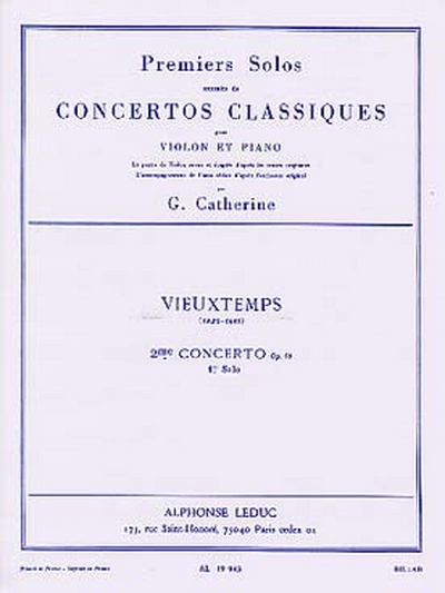 Premier Solo Extrait Concerto N02 Op. 19 Violon Et Piano VIEUXTEMPS HENRI / CATHERINE