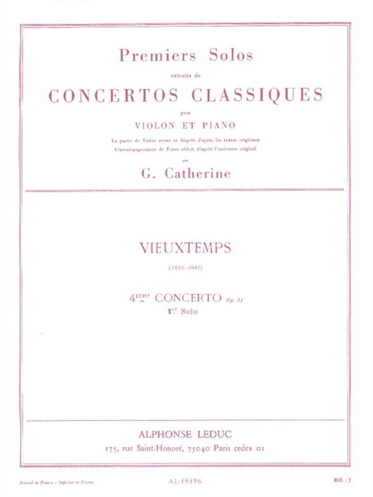 Premier Solo Extrait Concerto N04 Op. 31 Violon Et Piano VIEUXTEMPS HENRI / CATHERINE