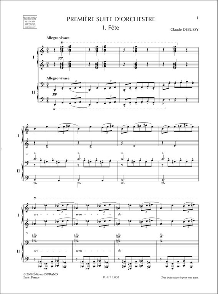 Première Suite d'Orchestre de Claude Debussy pour piano à 4 mains.