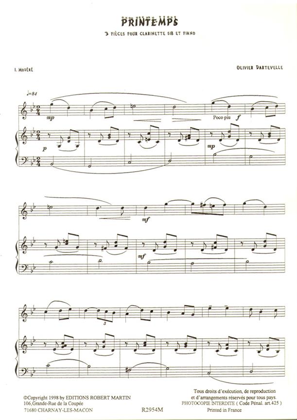 Clarinette et Piano Musique pour orchestres et ensembles