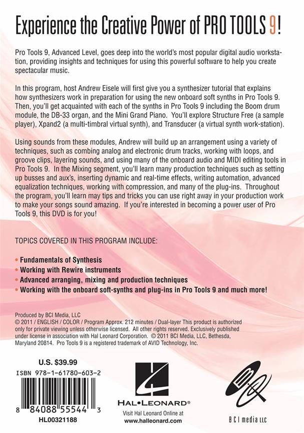 Apprenez à configurer et à utiliser les instruments ReWire, et se familiariser avec les synthés dans Pro Tools 9, y compris le module de batterie Boom, le DB-33 d'orgue et le piano Mini Grand. Explorez Structure Free (un lecteur d'échantillons), Xpand2 (un synthé multitimbral virtuel), et Transfuser (un synthé virtuel-poste). Utilisation des sons à partir de ces modules, l'hôte Andrew Eisele construit un arrangement combinant les pistes de batterie analogique et électronique, travaillant avec des boucles et des clips groove, et en utilisant l'audio embarquée et des outils d'édition MIDI, effets de traitement sonore, et l'utilité des plug-ins. Dans le segment de mixage, Andrew explique les techniques de production avancées, telles que la mise en place des bus, en insérant des effets dynamiques et en temps réel, l'écriture d'automatisation et d'appliquer des effets, tant pour les pistes et au bus stéréo pendant le mastering qui donnera à vos pistes un avantage professionnel.