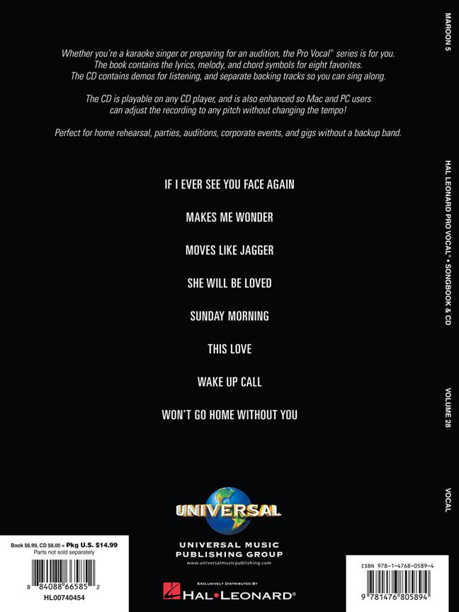 Que vous soyez un chanteur de karaoké ou la préparation à une audition, l'édition de cette Maroon 5 hommes de la série Pro Vocal est pour vous.