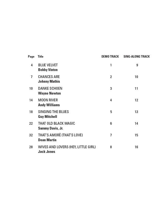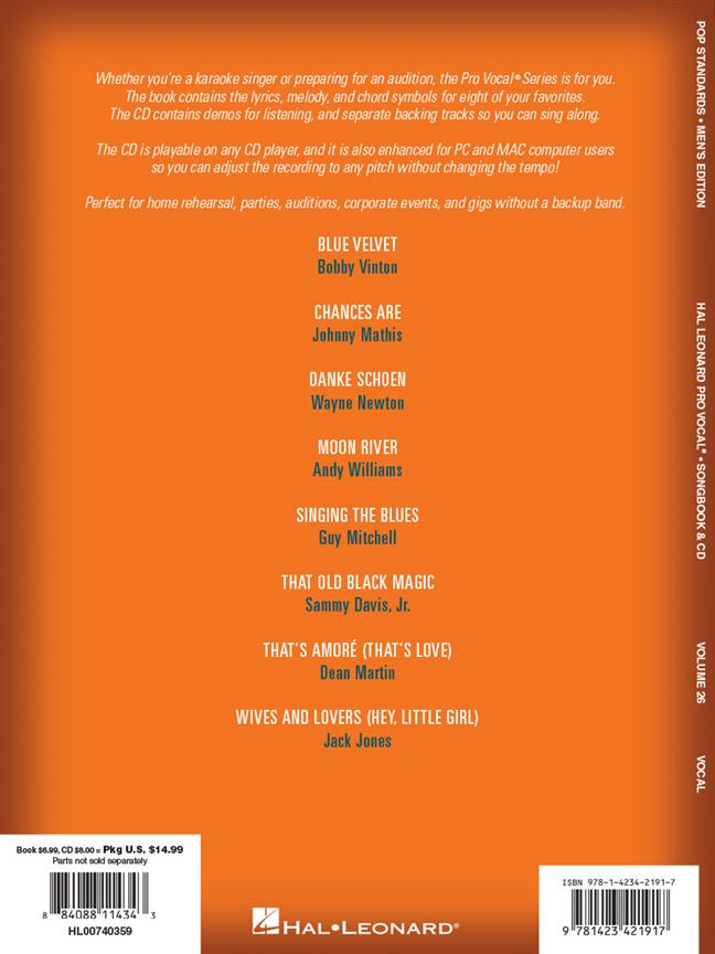 Que vous prépariez une audition ou que vous soyez un chanteur de karaoké cette collection est faite pour vous. Pro Vocal met à votre disposition les paroles, lignes mélodiques et accords guitare de 8 chansons de standards POP. Le livre est accompagné d'un CD contenant 2 versions de chaque morceaux : une démo complète et une version sans chant.
