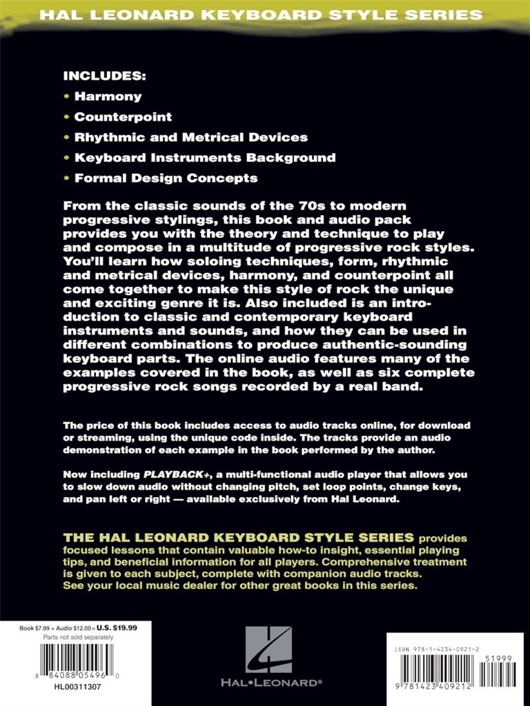 Le Cd qui accompagne le livre propose de nombreux exemples cités dans le livre, ainsi que 6 chansons de rock progressif enregistrées par un groupe professionnel.