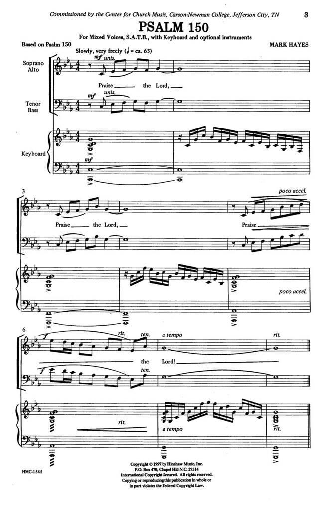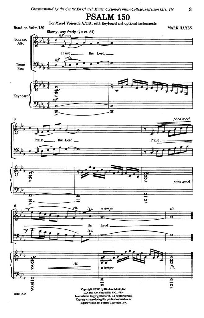 Un hymne de festival époustouflant, pas difficile, mais qui nécessite une chorale assez nombreuse. Les instruments sont optionnels, mais ça en vaut la peine.