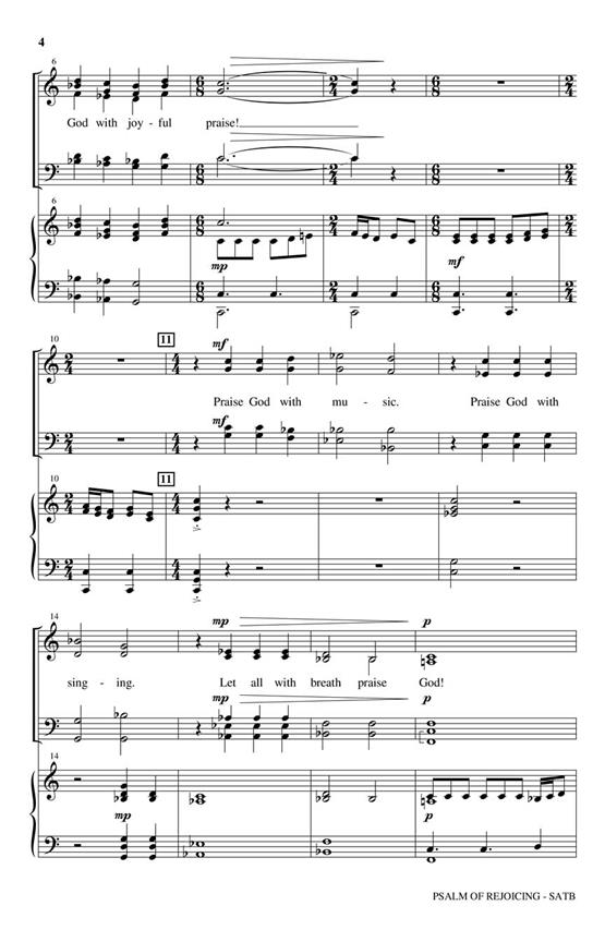 Utilisations : dimanche de la Trinité, généralÉcriture : Psaume 150 ; Psaume 43:4 De notre série Cathédrale vient un hymne de jubilation sans bornes. Des mesures mixtes et des syncopes excitantes remplissent le thème tout en articulant des passages des Psaumes. La section centrale contrastée est remplie d’harmonies expressives et d’écriture chorale luxuriante. La pièce se termine sur des voix antiphonales qui résonnent en écho à leurs louanges et à leur adoration.