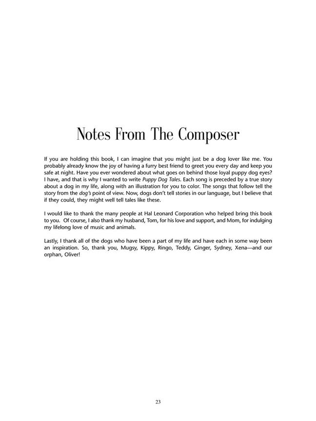 A delightful collection of five original songs celebrating the wonder of dogs. Includes stories about each song, and illustrations for students to color. Song titles include: New Ways * No Name of My Own * One of a Kind * Running with the Big Dogs * The Telltale Tail.