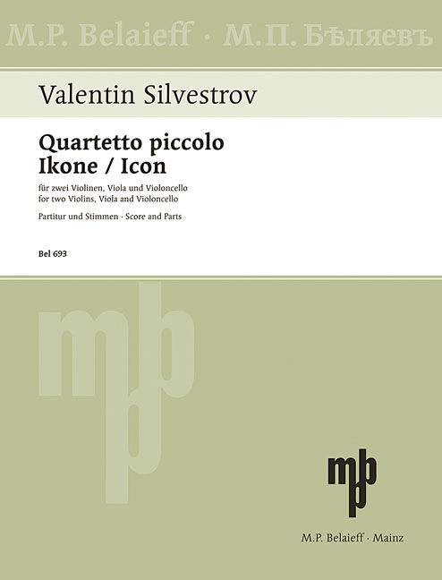 Cette édition contient deux miniatures quatuor à cordes qui sont 43 ans d'intervalle. Piccolo Quartetto (1961) est le premier Valentin Silvestrov douze notes de composition qui se compose de trois mouvements peu attacca fusion dans l'autre. Bien que créé à un âge précoce, le travail est tout sauf le travail d'un élève: C'est surtout dans le 2e mouvement que le "toucher" des personnes âgées du Silvestrov peut déjà se faire sentir. Icon a été composée en 2004 pour le Quatuor Rosamunde. C'est une composition calme et introvertie dans le style d'une prière. Sa modalité spécifique n'aurait guère émergé dans l'oeuvre d'un compositeur qui n'avait pas passé par le "purgatoire" du dodécaphonisme.
