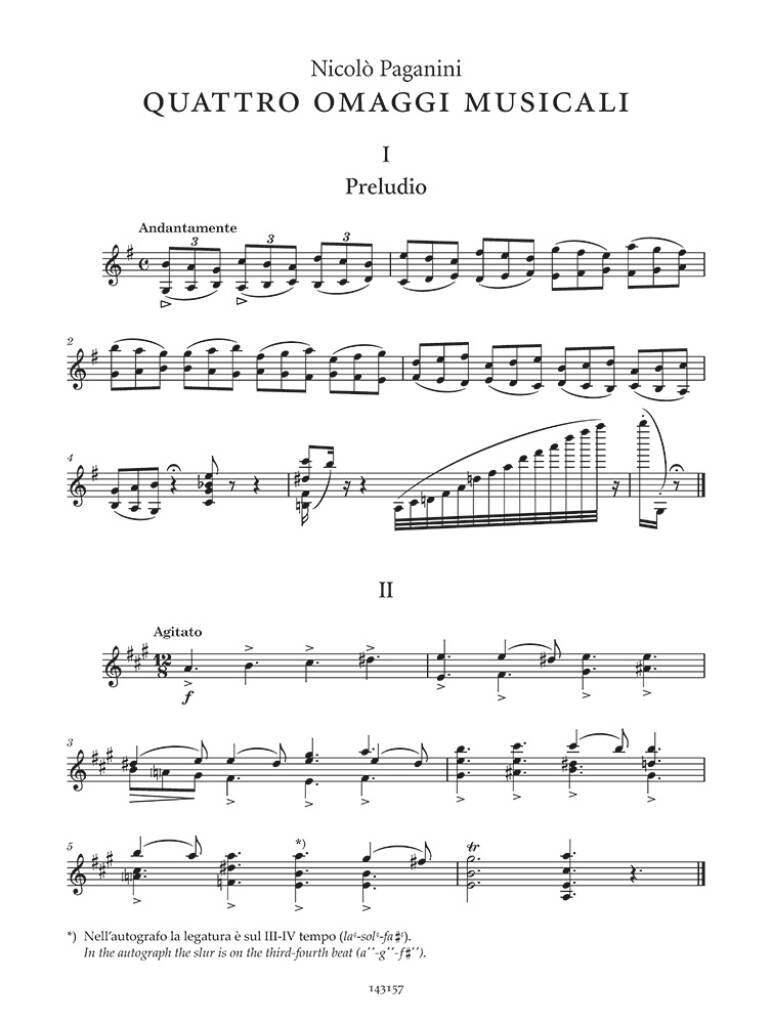Conçus comme une série d’hommages à des musiciens et personnalités rencontrés lors de ses voyages, les quatre courtes compositions pour violon solo rassemblées ici – Preludio, Agitato, Allegro assai et Capriccio – offrent un aperçu unique de l’œuvre de Nicolò Paganini. Ce sont des œuvres courtes mais substantielles, et l’empreinte stylistique du compositeur est clairement reconnaissable. Leur convalescence enrichit non seulement le précieux catalogue de Paganini : elle offre aussi aux chercheurs de nouveaux aperçus sur le répertoire du célèbre virtuose pour violon solo.