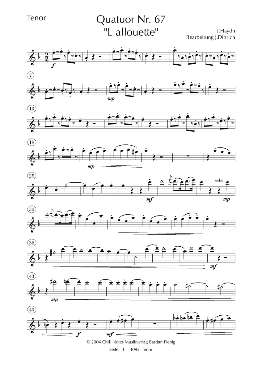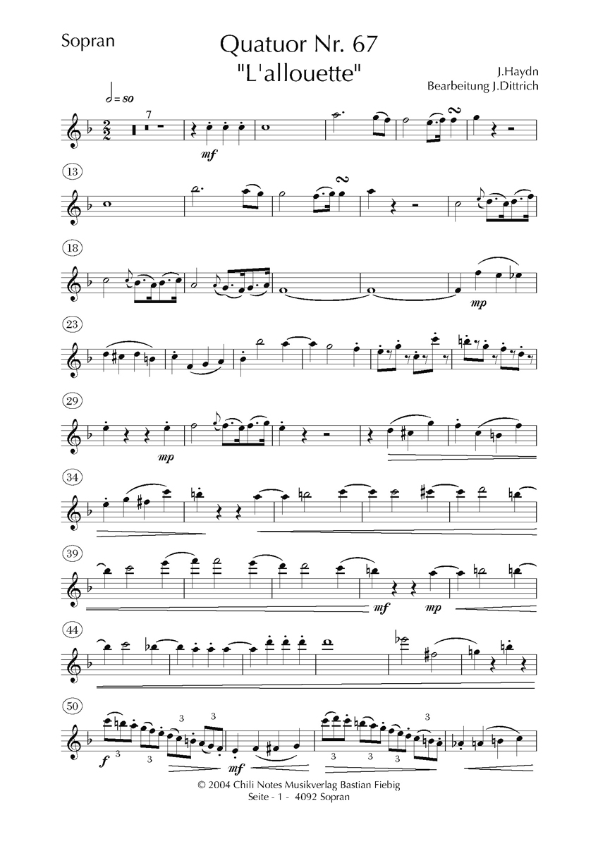 Quatuor op. 67 L’Allouette HAYDN FRANZ JOSEF