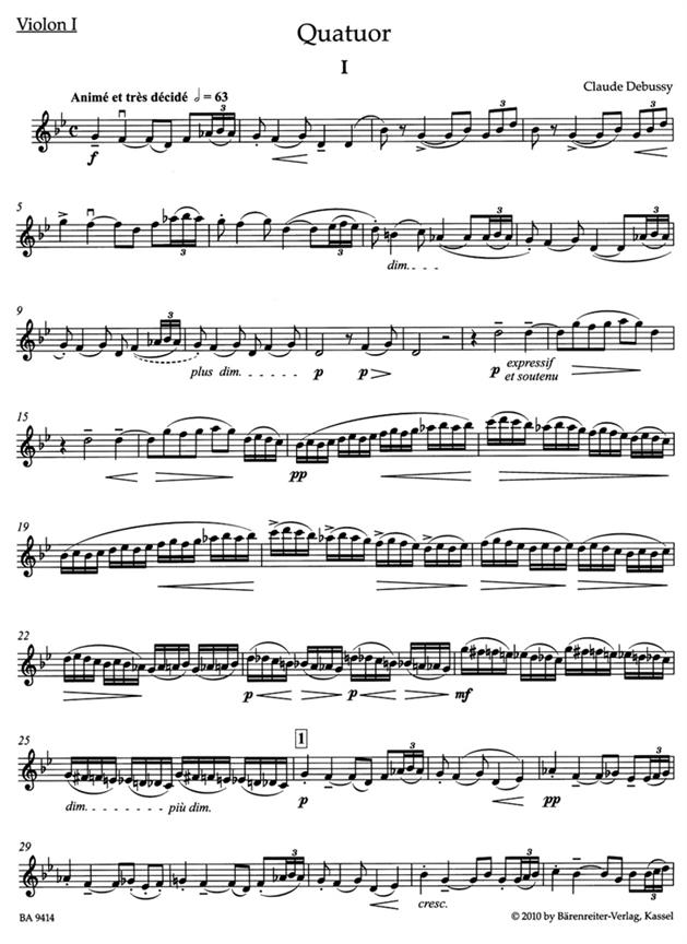 Debussy's only string quartet, composed in 1893, was his first masterwork. Together with two further works from this creative period, Prélude à l’après-midi d’un faune and Pelléas et Mélisande, the quartet established the composer's position as the rising star of the French music scene. Discrepancies existed from the initial publication in 1894 between the score, corrected and seen into print by the composer and the parts, not corrected by him. At a later point, Debussy made a large number of corrections and alterations in a copy of the first edition; these alterations have been incorporated in this Bärenreiter Urtext edition. Thisscholarly-critical edition utilises all sources including the composer's letters, which offer a valuable insight into the genesis of the composition.