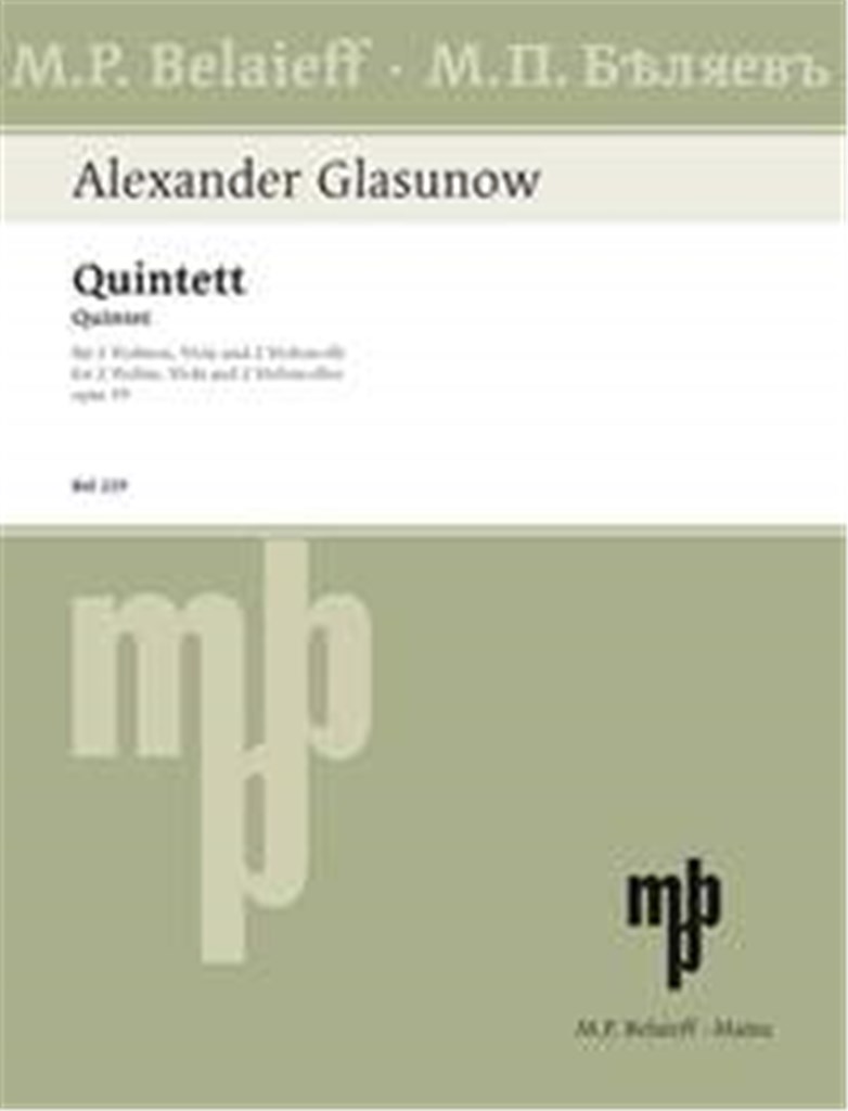 Quintet A Major Op. 39 GLAZOUNOV ALEXANDER