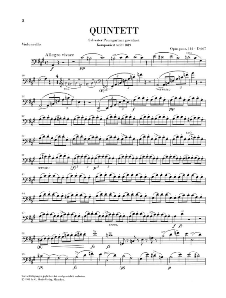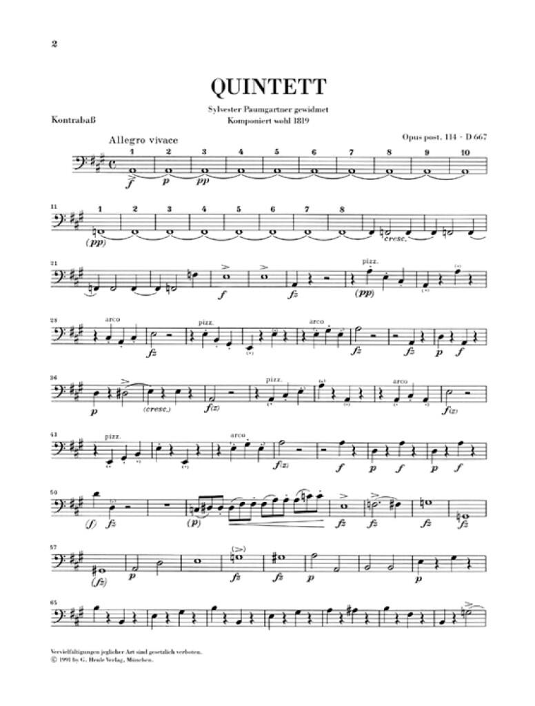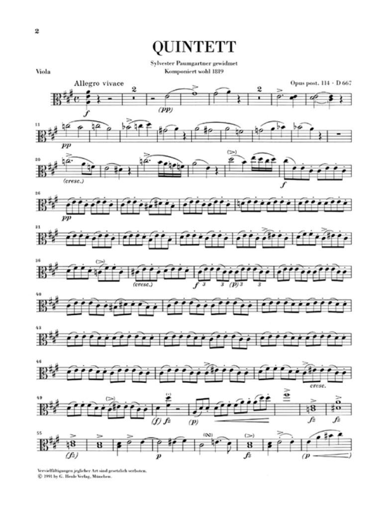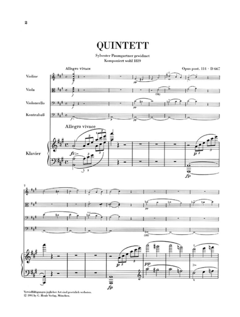 Quintet A major op. post. 114 D 667 for Piano, Violin, Viola, Violoncello and Double Bass (Trout Quintet)