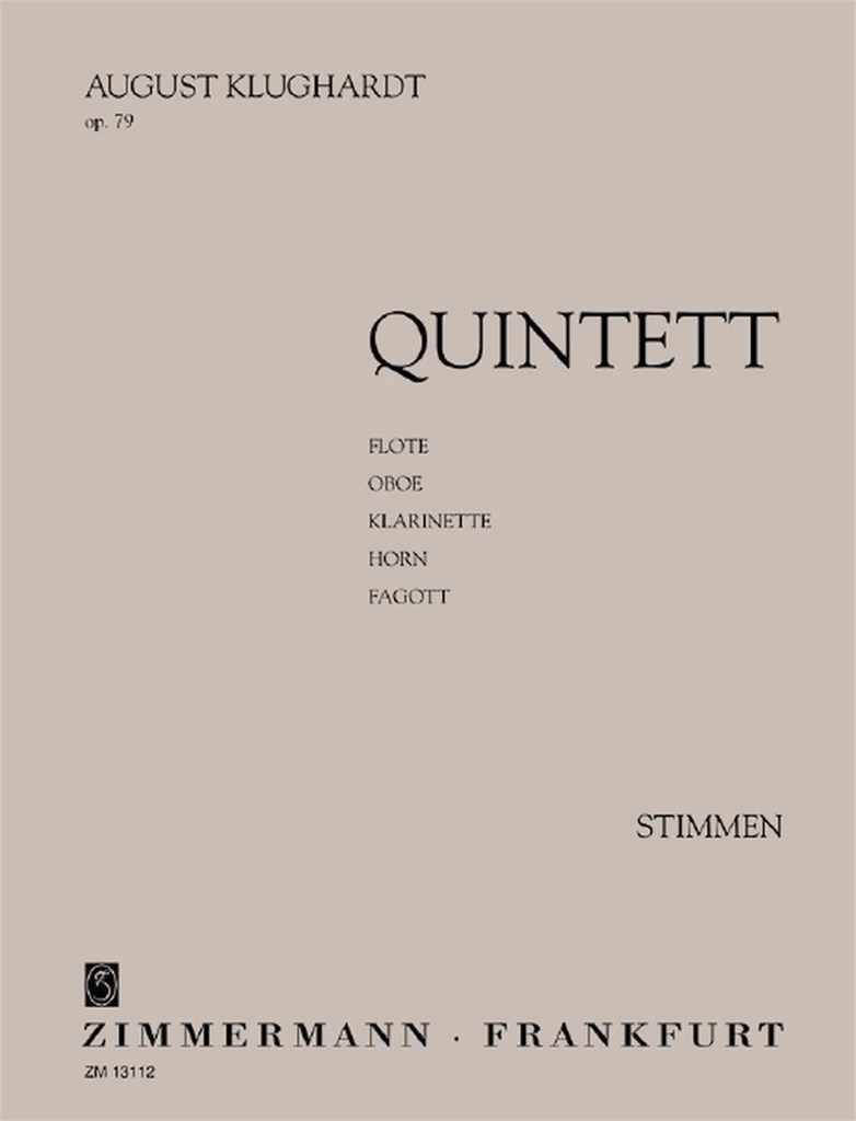 Quintette Op. 79 Pour Flûte, Hautbois, Clarinette, Cor Et Basson.Partition Etude KLUGHARDT AUGUST FRIEDRICH MARTIN