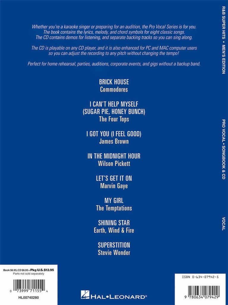Chantez 8 chansons en tête des charts avec un orchestre professionnel. Que vous soyez un chanteur ou d'karoake préparer pour une audition, la série Pro Vocal est fait pour vous.