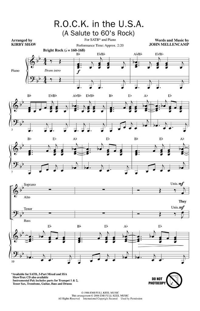 Toute la puissance du rock & roll explose dans ce hommage de John Mellencamp à la musique d’une époque antérieure. Un excellent thème de concert et un spectacle de danse. Durée de la performance : Environ 2:20. Disponibles séparément : SATB, mixé en 3 parties, SSA, CD ShowTrax et Instrumental ePak (parties pour trompette I & II, saxophone ténor, trombone, guitare, basse et batterie).