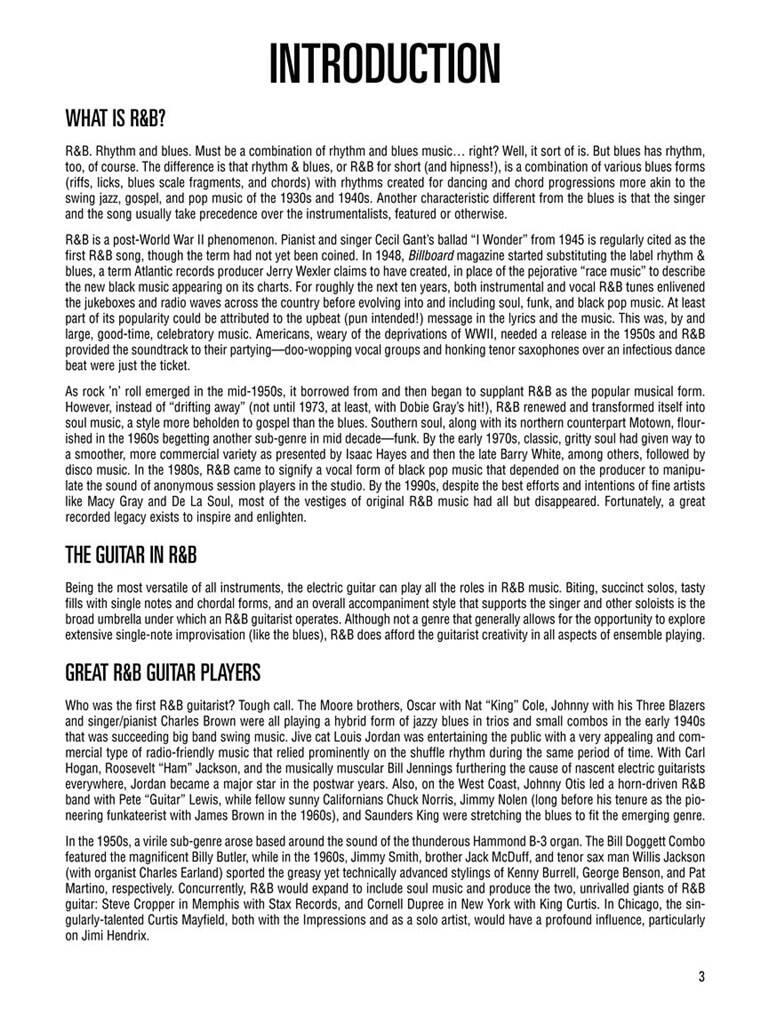 La méthode Hal Leonard R&B Guitar est votre guide complet pour apprendre la guitare rhythm and blues. Ce livre utilise de vrais morceaux R&B, funk et soul pour vous enseigner les bases du R&B rythmique et de la guitare R&B lead dans les styles de Steve Cropper, Cornell Dupree, Curtis Mayfield, Jimmy Nolen, Billy Butler et bien d’autres.