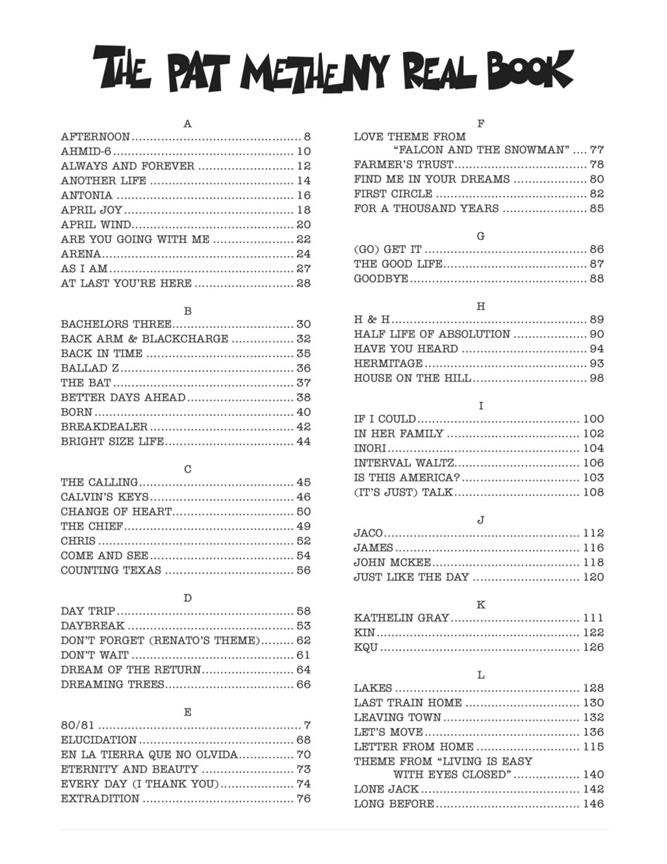 Pat Metheny is one of the most important voices in modern music. Through his writing, recordings and performances he has created a significant body of work that places him among the major musical figures of our time. With his recent induction as the youngest member of the Downbeat Hall of Fame, Metheny becomes only the fourth jazz guitarist to be chosen for that honor, joining Charlie Christian, Django Reinhardt and Wes Montgomery. He has won twenty Grammy" awards in twelve different categories, been named Best Guitarist in countless polls over four decades, and has sold millions of records worldwide. For all his accomplishments in music, his compositions have become modern standards, beloved by musicians all over the world. With this volume, Metheny has selected 147 of his most played tunes to create a new type of Real Book, approved and gig-tested by the composer himself! This edition is arranged for all B-flat instruments.